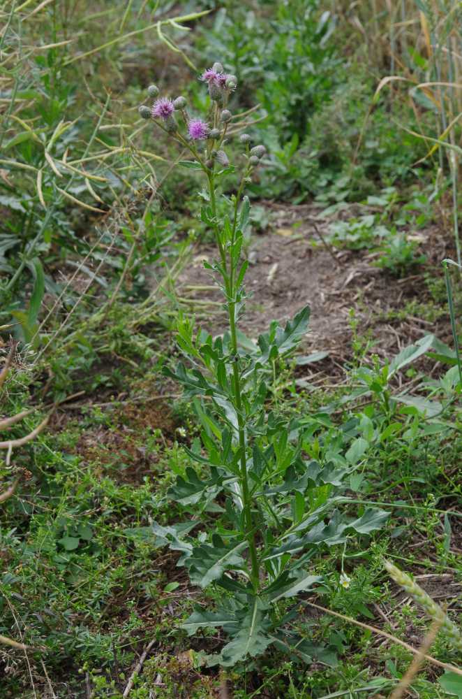 neboli pcháč rolní je druh šířící se podzemními výběžky i semeny. Vyznačuje se hlubokými kořeny (a značnou regeneraci při jejich poškození) a značnou odolností proti účinným látkám selektivních herbicidů. U nově založených trávníků je nutné mechanické odstranění, při větším zaplevelení je možné chemické ošetření selektivními herbicidy, ale za použití vyšších dávek.