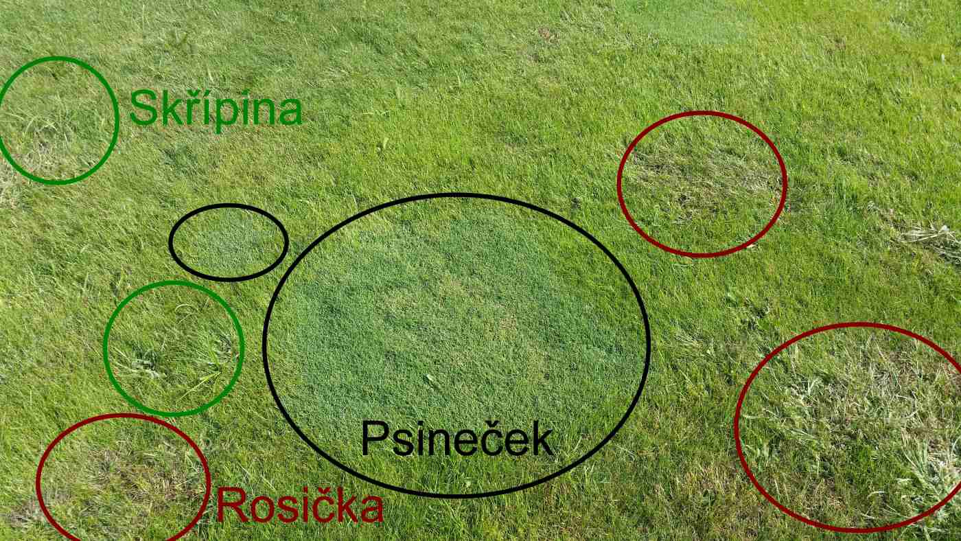 Nejčastěji se na nově založených a na již zapojených trávnících objevuje: